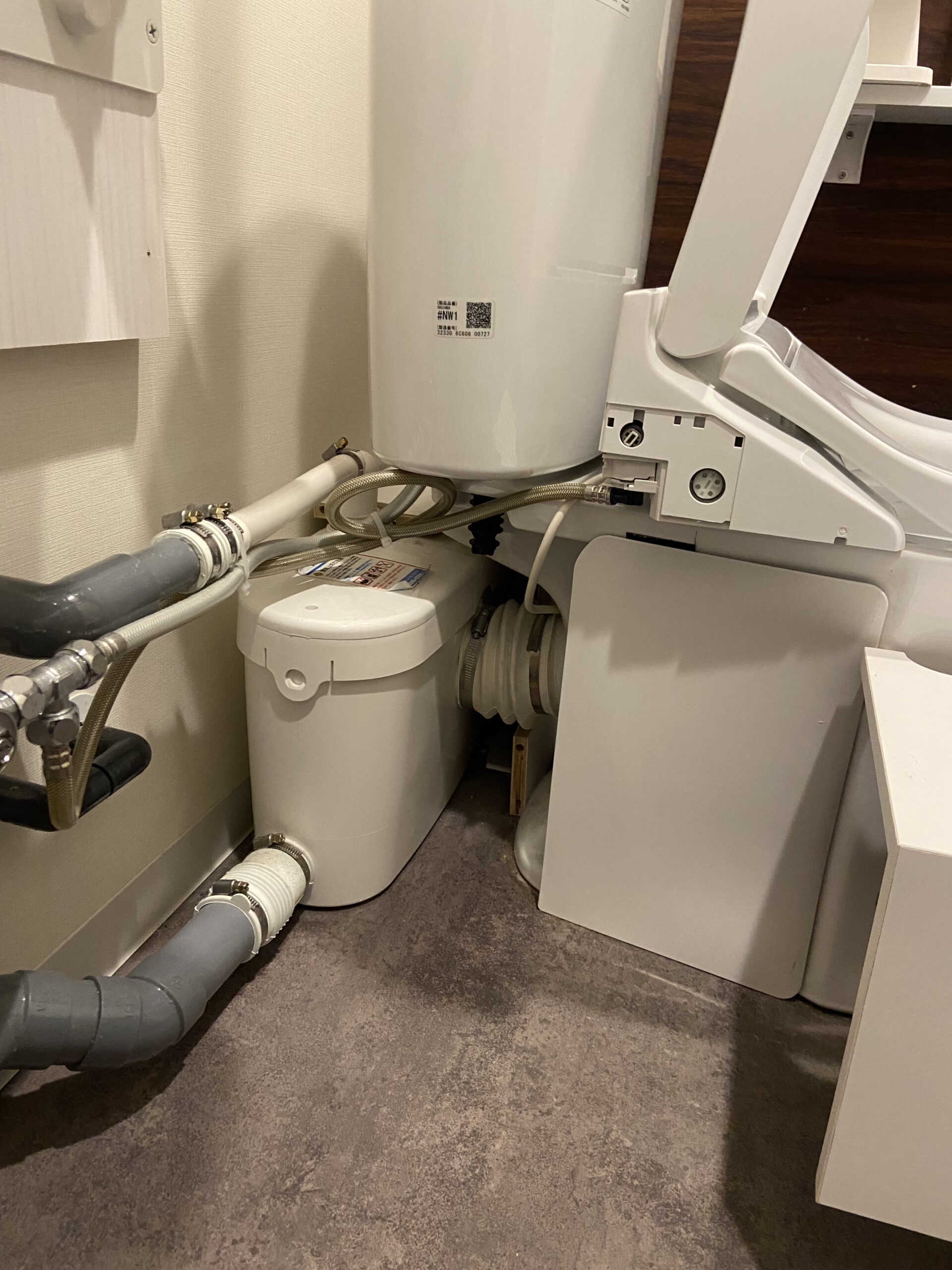 テナントビル内のクリニックにて、利便性向上のためのトイレ増設工事を行いました。現場は汚水本管が天井裏を通っており、通常の自然勾配では排水が困難な環境。さらにテナント入居中のため、床を解体するような大掛かりな工事は避けたいという制約がありました。